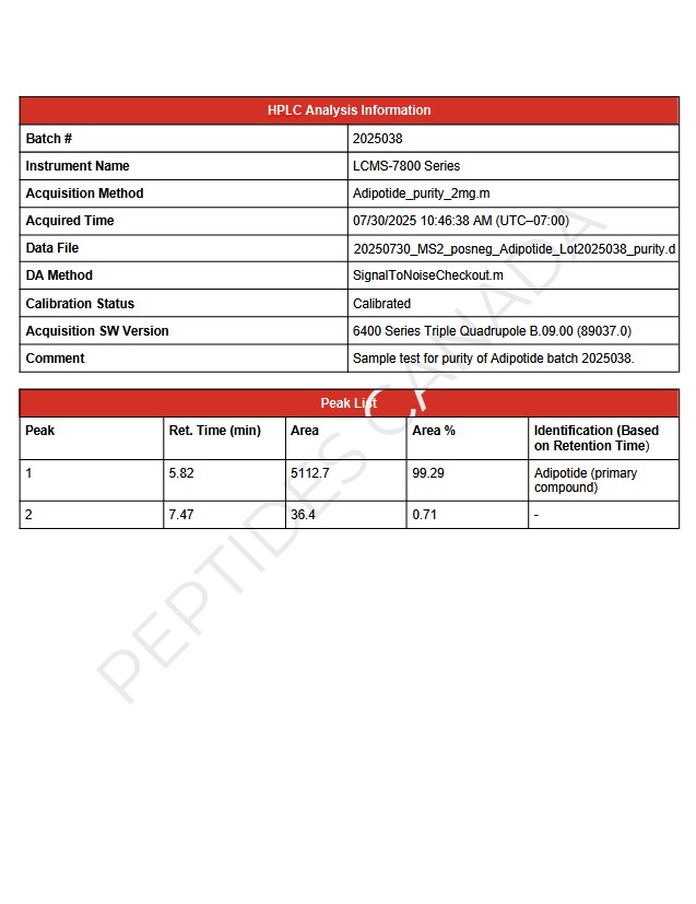 We take a laboratory-first approach to quality. Each batch is made under controlled conditions and verified by an independent lab (HPLC/MS). We only ship batches that test ≥99% purity, and we provide a full COA, including identity, methods, and chromatograms, for your review.