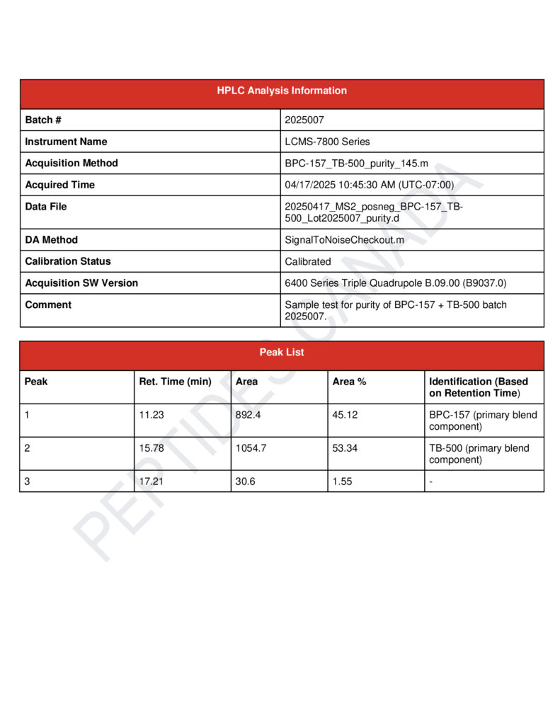 We take a laboratory-first approach to quality. Each batch is made under controlled conditions and verified by an independent lab (HPLC/MS). We only ship batches that test ≥99% purity, and we provide a full COA, including identity, methods, and chromatograms, for your review.