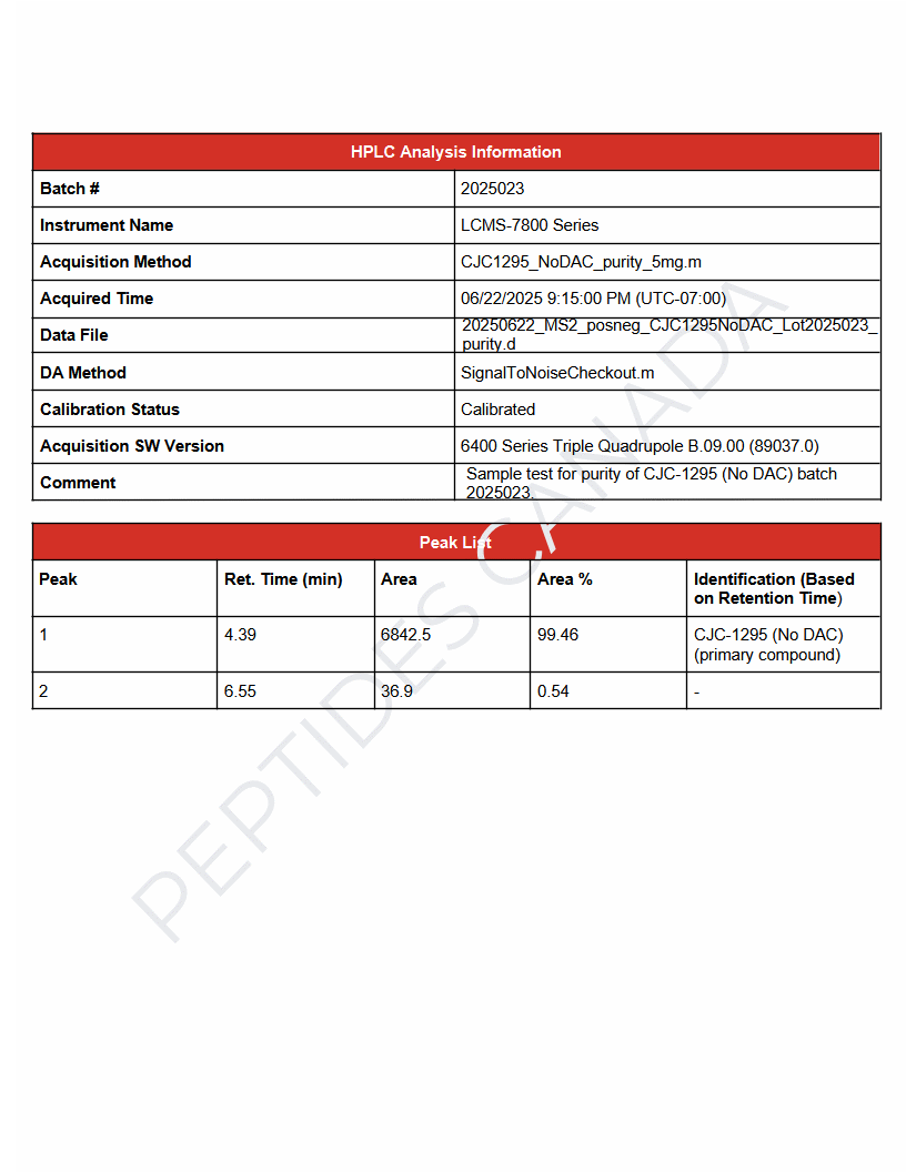 CJC-1295 (No DAC) is available for research and laboratory purposes only. Not for human consumption.