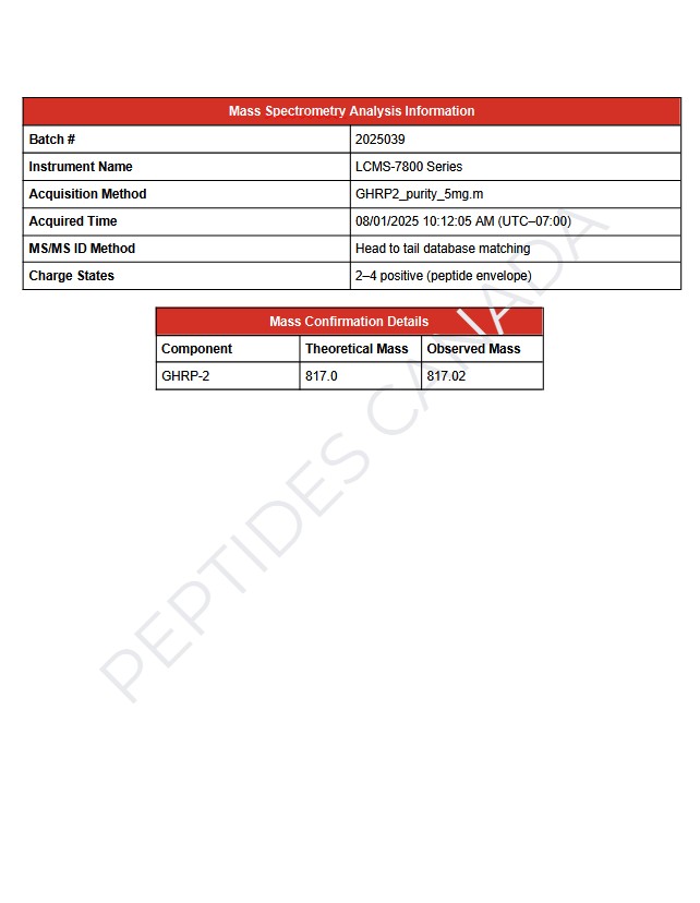 Contents: GHRP-2 (Growth Hormone Releasing Peptide-2)