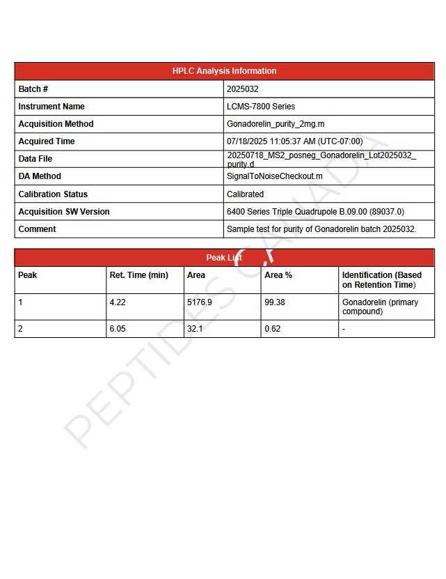 Gonadorelin peptide is available for research and laboratory purposes only. Not for human consumption.