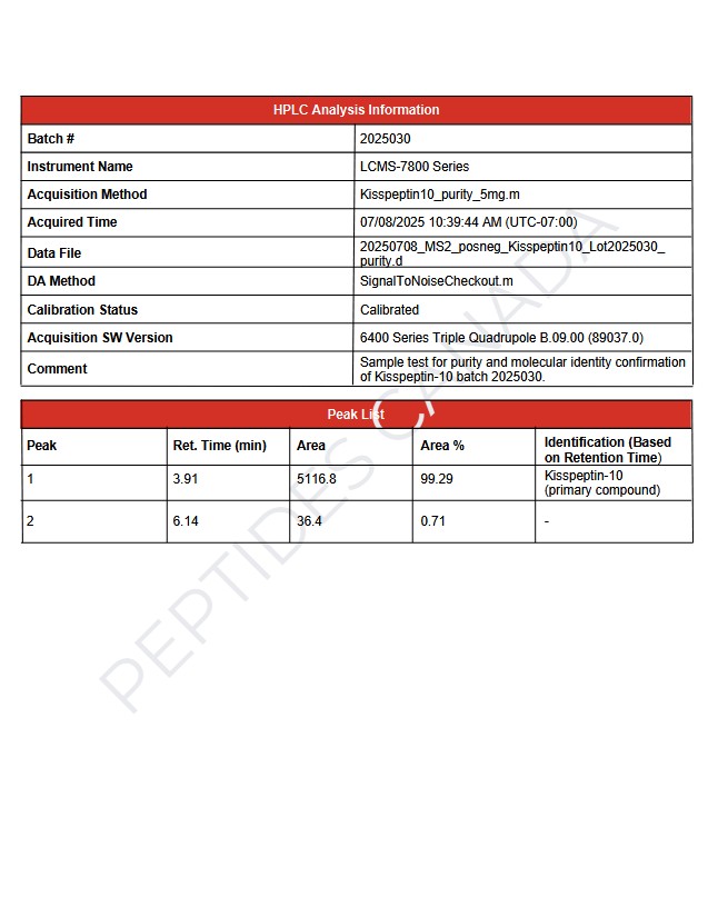 Kisspeptin-10 peptide is available for research and laboratory purposes only. Not for human consumption.