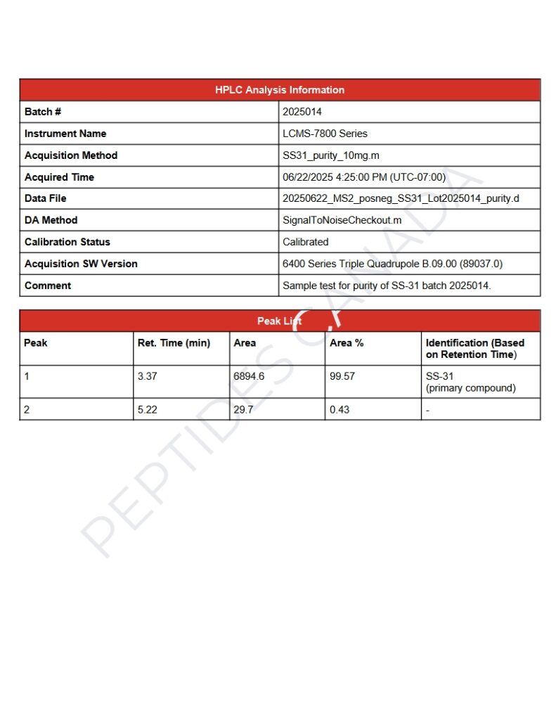 SS-31 peptide is available for research and laboratory purposes only. Not for human consumption.