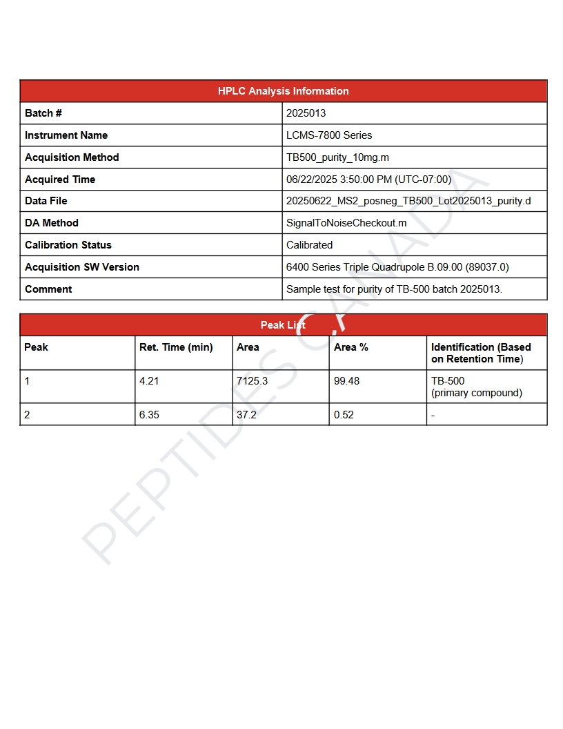 TB-500 peptide is available for research and laboratory purposes only. Not for human consumption.