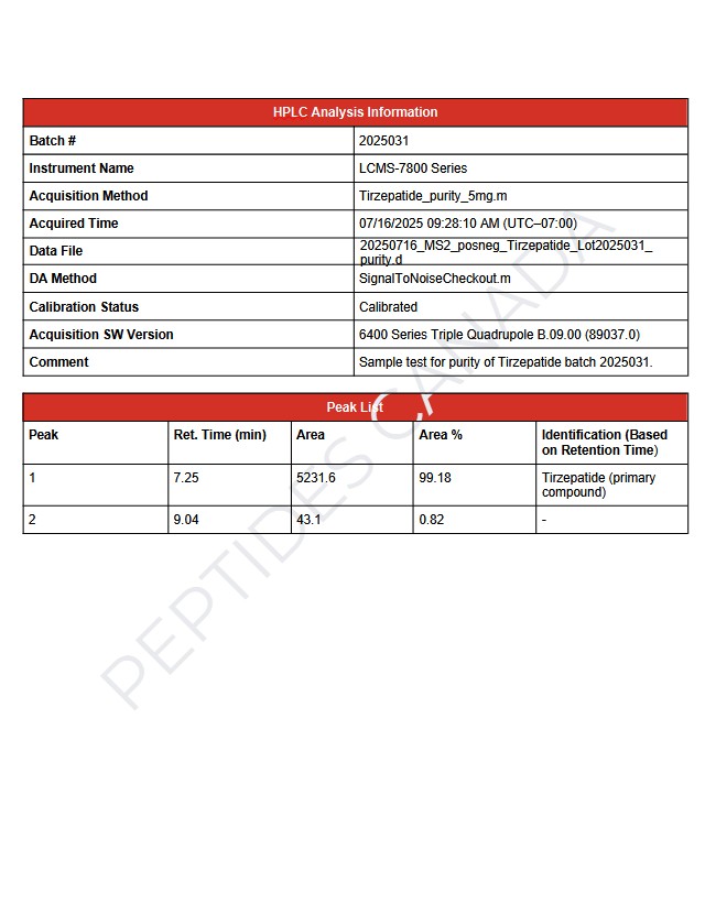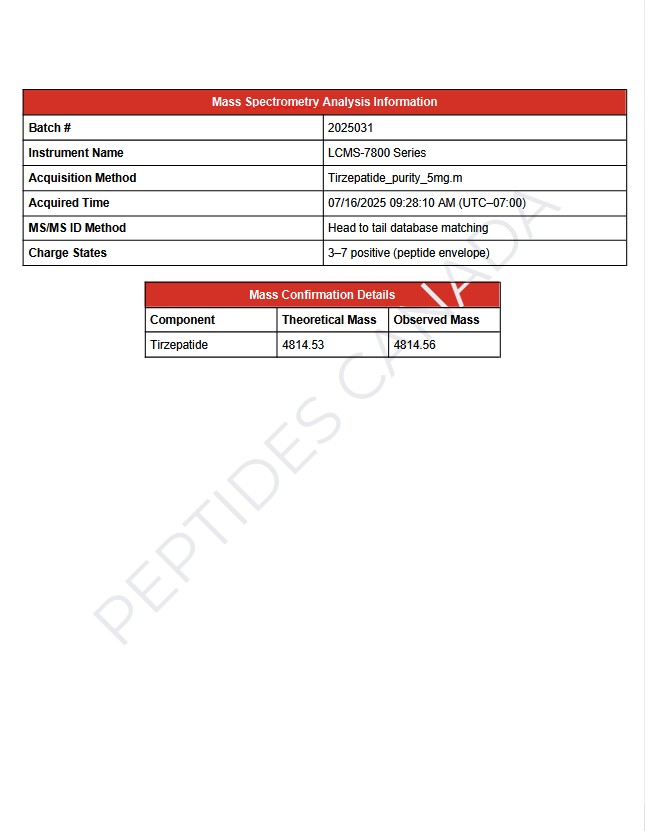 This batch of  Tirzepatide Peptide has been third-party lab-tested and verified for quality. Size: 5mg, 10mg, 15mg, 20mg, 30mg, 40mg, 50mg, 60mg